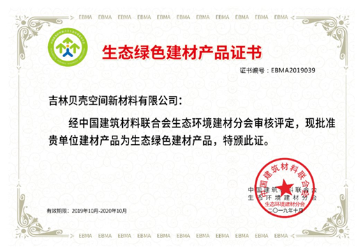 吉林貝殼空間新材料有限公司作為《貝殼粉內(nèi)墻涂料行業(yè)標(biāo)準(zhǔn)》主編單位,不僅通過(guò)ISO9001國(guó)際質(zhì)量管理體系認(rèn)證和ISO14001國(guó)際環(huán)境管理體系認(rèn)證;還獲得“AAA級(jí)企業(yè)”、“貝殼粉壁材行業(yè)影響力品牌企業(yè)”、“中國(guó)工程建設(shè)重點(diǎn)推廣產(chǎn)品”、“中國(guó)綠色環(huán)保建材產(chǎn)品”和“品牌貢獻(xiàn)獎(jiǎng)”等多項(xiàng)殊榮。