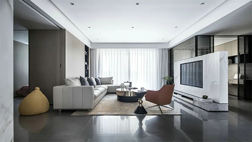 去繁從簡,客廳空間需要更加開闊的視野。淺色調(diào)貝殼粉涂料墻面的運用,讓不同分區(qū)的過度自然和諧,也使整個空間有著不斷的連續(xù)性,使客廳視覺感受更加靈動。
