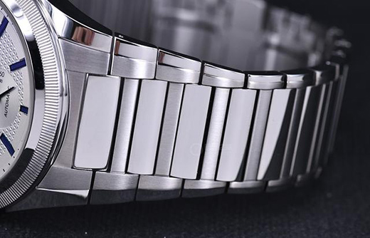 腕表采用精鋼材質(zhì)打造而成,堅(jiān)固耐造,再經(jīng)拋光工藝處理,整體呈現(xiàn)出光滑細(xì)膩的質(zhì)感,腕表直徑為42毫米,符合男士腕周的尺寸范疇。