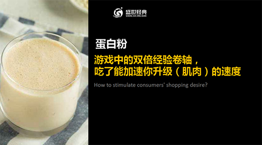 此蛋白粉針對男性群體普遍有打游戲的愛好,產品優(yōu)勢為“長肌肉更快”,為了讓目標消費群體能夠快速讀懂產品,文案為:
