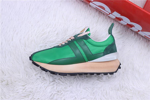 浪凡Lanvin Bumper 運動鞋的時髦韻味 原汁原味的復(fù)古外觀包括中底、尼龍鞋幫、鞋舌等部分 亦充滿明顯的做舊意味 除了選用優(yōu)質(zhì)尼龍 鞋面還有高級皮革的點綴 除了鞋舌繡有品牌圖標(biāo)外 在后踭的穩(wěn)定部件位置