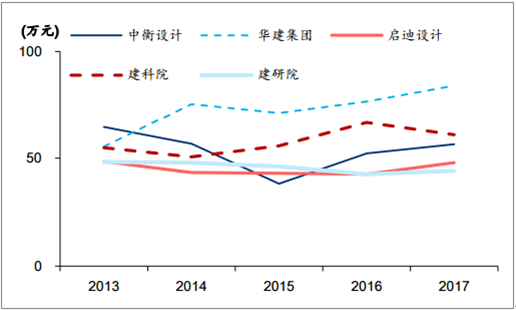 建筑設(shè)計主要公司歷年人均產(chǎn)值(萬元)