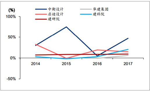 總承包收入前置指標(biāo)預(yù)收賬款快速增加,縱向整合下行業(yè)龍頭未來通過 EPC 業(yè)務(wù)有望提 升市場競爭力。設(shè)計業(yè)務(wù)位于產(chǎn)業(yè)鏈前端,按照供需可以推斷,在單人產(chǎn)值提升存在天花 板情況下,員工數(shù)量提升預(yù)示了企業(yè)對未來訂單承接和產(chǎn)值的樂觀判斷,2017年華建集 團、建科院和中衡設(shè)計均出現(xiàn)人員增速提升,或預(yù)示企業(yè)對未來行業(yè)景氣度的樂觀判斷。 此外,2017年華建集團總承包業(yè)務(wù)預(yù)收款大幅增加52%,中衡設(shè)計在16年同比增長45.8% 情況下維持穩(wěn)定,啟迪設(shè)計同比增長 23.4%,而根據(jù)行業(yè)經(jīng)驗,預(yù)收賬款是總承包工程收 入結(jié)轉(zhuǎn)的前置指標(biāo)。建筑設(shè)計龍頭公司除橫向整合外,通過向產(chǎn)業(yè)鏈上端延伸進入項目投 資端,我們認(rèn)為上市建筑設(shè)計公司有望依托 EPC 能力及資金能力,通過全產(chǎn)業(yè)鏈延伸, 實現(xiàn)市場競爭力的提升。