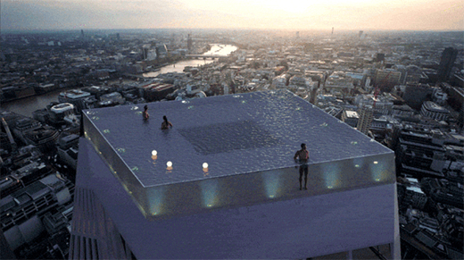 這個(gè)世界上第一個(gè) 360 度的屋頂泳池,位于倫敦。這個(gè)概念一經(jīng)出世,便成為了各大網(wǎng)站的討論焦點(diǎn)。