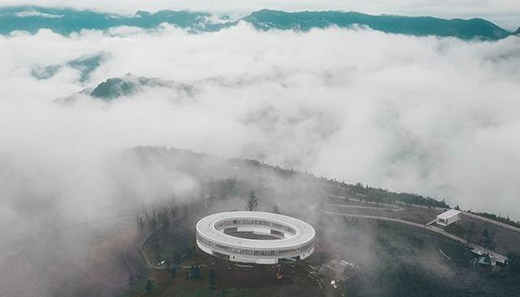 C+ Architects建筑設(shè)計(jì)事務(wù)所為重慶武隆·懶壩國(guó)際大地藝術(shù)季設(shè)計(jì)的主展示場(chǎng)館。作為整個(gè)展覽活動(dòng)中最重要的一個(gè)建筑,其本身即是一件大地藝術(shù)作品,被稱為“"漂浮在山中的光環(huán)"。在遠(yuǎn)離都市文明的山中,建筑師利用自然中的經(jīng)驗(yàn),通過對(duì)大地景觀稍加施工,使人重新注意自然并回歸到自然中去。