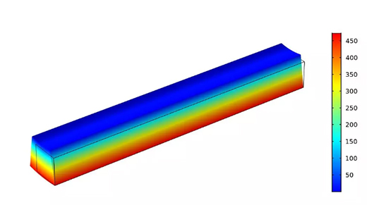這個(gè)例子描述了暴露在溫度梯度下的梁的非線性力學(xué)行為。該模型將傳熱和固體力學(xué)耦合在一起,應(yīng)力-應(yīng)變關(guān)系是取決于溫度和應(yīng)變的非線性函數(shù)。
