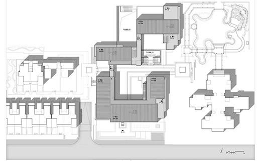 如果說(shuō)家是小院子,那么鄰里中心作為社區(qū)交往的核心就是一個(gè)大院子。超市、健身、影音、書(shū)吧等現(xiàn)代生活需求的引入,成為設(shè)計(jì)的切入點(diǎn),將院空間進(jìn)行連通切割,打破原有的封閉形式,結(jié)合交通流線(xiàn)向社區(qū)打開(kāi),重塑形成開(kāi)放、共享、活力的社區(qū)交往空間。