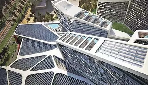 迪拜是一個(gè)充滿創(chuàng)造性的國(guó)家,一座又一座令人難以置信的建筑在這片土地上拔地而起。除了沙子和創(chuàng)造性外,迪拜還擁有什么豐富的資源嗎?答案自然是充足的日照。格拉夫特建筑設(shè)計(jì)事務(wù)所(GraftLab)設(shè)計(jì)的垂直村落便充分利用了這種優(yōu)勢(shì)。建筑表面與太陽(yáng)能收集器呈特定角度。太陽(yáng)能收集器位于這個(gè)多功能建筑群的南端,裝有自動(dòng)旋轉(zhuǎn)樞軸,可讓日照時(shí)間實(shí)現(xiàn)最大化。