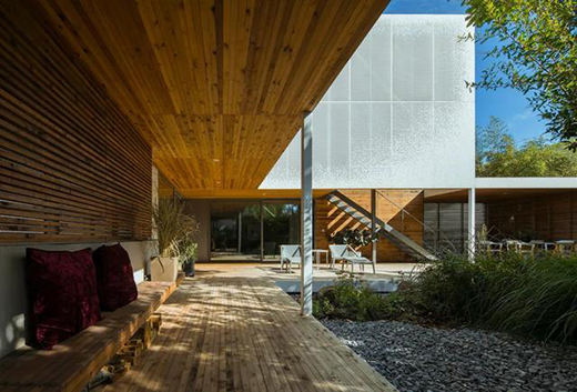 “大房子”作為一個(gè)容器被塑造成一個(gè)室內(nèi)空間,但是當(dāng)人們真正居住和使用它時(shí),就會(huì)感覺到室內(nèi)外空間的不斷轉(zhuǎn)換。從而通過項(xiàng)目表達(dá)并實(shí)現(xiàn)一種交織與融合的居住體驗(yàn)。