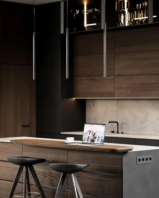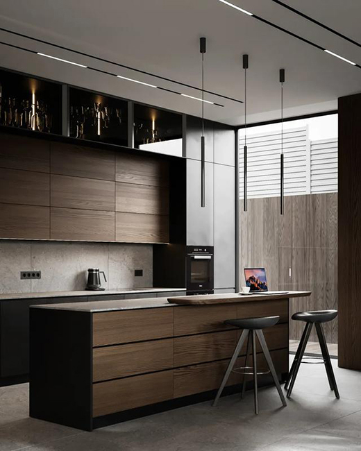 本別墅面積350㎡,設計師采用紋理自然的原木,搭配灰色調(diào)的材質(zhì),用黑色線條勾勒。在材質(zhì)和色彩上都自帶一剛一柔的基調(diào)。透露著簡約而不簡單,精致而不奢華的生活品質(zhì)訴求。