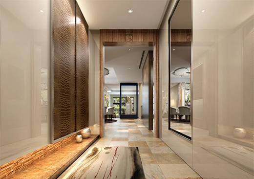 在與業(yè)主一家溝通了四次后,終于達成了最后的共識,以后現(xiàn)代主義為基調(diào),以天然的石材、木材、金屬以及鏡面為原材料,彰顯主人高雅的生活情趣。
