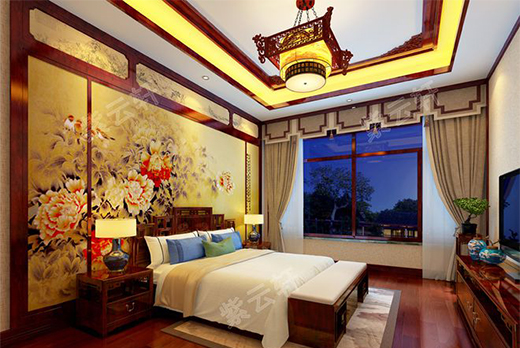 臥室,居室在色彩方面秉承了傳統(tǒng)古典風格的典雅和華貴,再加入現(xiàn)代元素,呈現(xiàn)出時尚的特征。在配飾的選擇方面更為簡潔,少了許多奢華的裝飾,更加流暢地表達出傳統(tǒng)文化中的精髓,整體的牡丹裝飾圖象征著富貴與繁華,深受大家的喜愛。