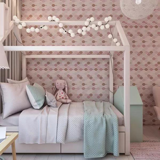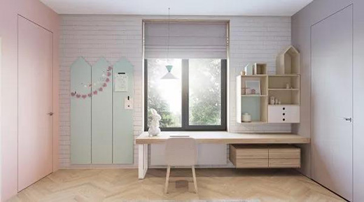 一個(gè)簡(jiǎn)約實(shí)用的有愛空間,房間不大,但每一處可利用的空間都落實(shí)到位。長(zhǎng)條的邊幾既可以當(dāng)作置物臺(tái)又可以當(dāng)作儲(chǔ)物空間,連裝飾的小屋也搖身一變小小書屋,一體的衣柜里間開一格收藏著孩子們的心愛之物,實(shí)在精致用心。裝飾的掛畫同樣是無不體現(xiàn)小主人的日常喜愛。