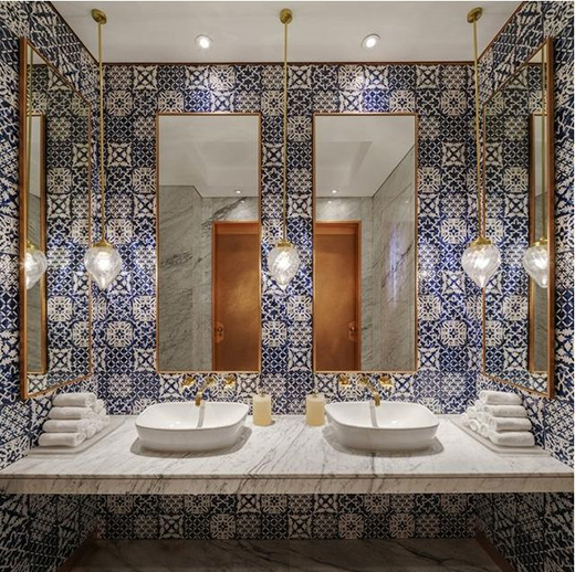 除了純色的瓷磚,花磚也是其中的一大類。簡(jiǎn)約的顏色、繁復(fù)的紋樣在有規(guī)律的重復(fù)著,豐富但不雜亂,帶來一絲異域風(fēng)情。