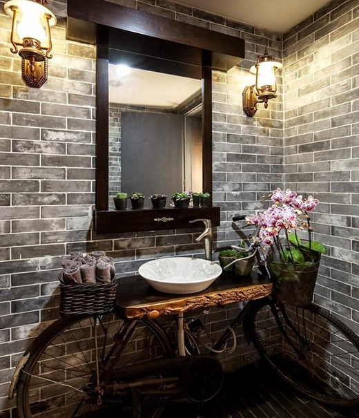 有趣的臺(tái)盆當(dāng)然不止這么兩種,用家中廢棄的自行車也能改造出一個(gè)讓人驚艷的設(shè)計(jì)。