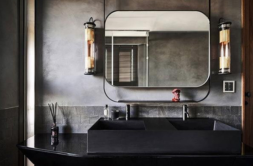 小空間中鏡子是一種利器,將墻面布置成一整面的鏡子,原本狹小的空間也變得通暢起來。而對(duì)于單純滿足洗漱或是簡(jiǎn)單的洗滌功能的水池來說,并沒有必要做的很深,或許一個(gè)斜面就能夠解決問題。