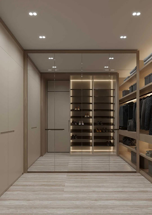 衣帽間的設(shè)計(jì)充分考慮到主人的實(shí)際使用情況,有良好的收納功能,明確的劃分好掛衣區(qū)、疊放區(qū)、鞋包區(qū)等不同區(qū)域,讓衣帽間繁而不亂。