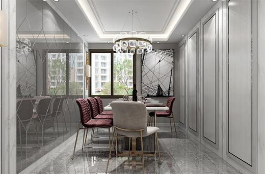 餐廳空間中餐椅、餐桌、吊燈的材質(zhì),將輕奢高級感表現(xiàn)得淋漓盡致,墻面的簡約線條與裝飾畫中的線條,在體現(xiàn)簡約同時,也體現(xiàn)了屋主的藝術(shù)氣息的追求。