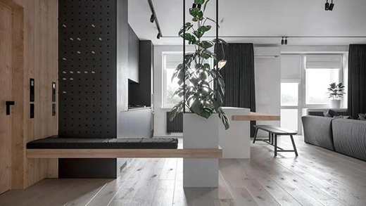 整個(gè)空間采用了高級(jí)灰為主色調(diào),讓整個(gè)空間的質(zhì)感有所上升,同時(shí)木質(zhì)材質(zhì)的加入又讓整個(gè)空間具有了生活氣息。
