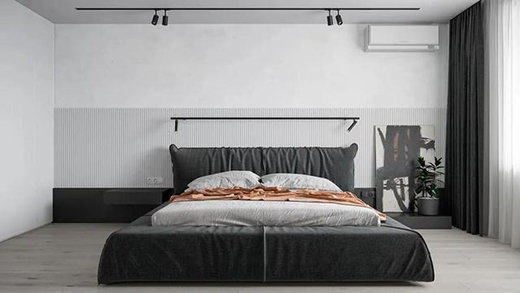 整個(gè)臥室依舊延續(xù)簡(jiǎn)潔的設(shè)計(jì)風(fēng)格,黑白灰搭配也是整個(gè)空間的主色調(diào),低飽和度的橘色調(diào)讓整個(gè)空間變得更加活潑。