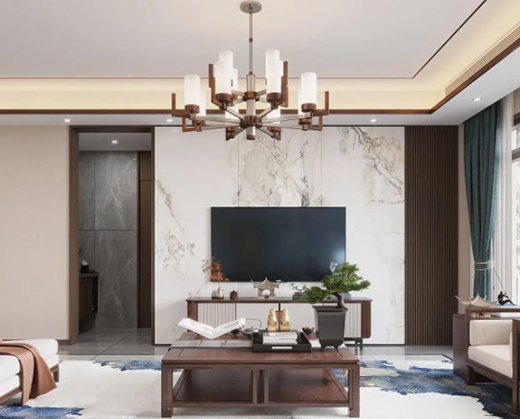中式客廳的布置,處處都是文化的底蘊(yùn)體現(xiàn),頂部的吊燈為這個(gè)空間帶來了明亮的氛圍感,實(shí)木的沙發(fā)茶幾,保障生活的舒適性。