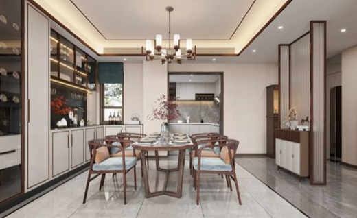 餐廳與廚房相連,開放式的設(shè)計(jì)將各個(gè)空間最大程度地打通、