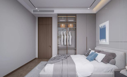 次臥的空間以灰色調(diào)為主,定制的柜子做到頂?shù)脑O(shè)計(jì),增加空間的收納面積。