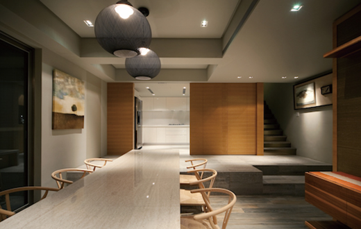 借由大面積開窗,攬入室內(nèi)綠景景況入內(nèi),并運用技能使用的分析歸納,讓空間感顯得開闊而重要。以復(fù)合使用技能整合成單一空間,創(chuàng)造高度的可利用性。在技能歸納的布局之后,嘗試將大量的木質(zhì)肌理融于空間,利用材質(zhì)的顏色、比例,在此強化秩序、向量支配的空間表情,整體架構(gòu)除了體現(xiàn)自然與環(huán)境之外,更呼應(yīng)了居住者的人文素質(zhì)。
