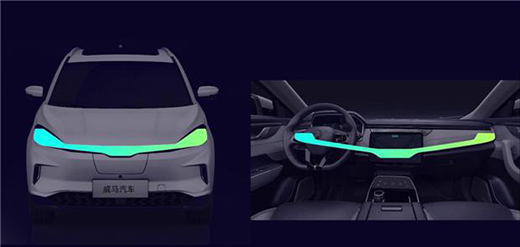 與傳統(tǒng)燃油車相比,新能源汽車沒有了發(fā)動機的空間負(fù)擔(dān),在車內(nèi)空間重構(gòu)、整車電動化等方面為設(shè)計師提供了更多想象的可能。如何讓用戶從設(shè)計上,快速識別一輛智能電動汽車,成為各車企思考的課題。威馬汽車獨創(chuàng)智能交互動態(tài)Logo燈,由五條柱狀“極光色”LED燈組成,富有節(jié)奏的跳動兼具呼吸效果和流水特征,不僅在行車間成為其智能電動汽車身份的象征,更兼具實用性,為用戶帶來車輛充電、解鎖、上鎖等 7種行車模式的智能提示。