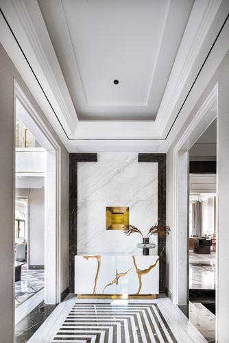 本案空間設(shè)計(jì),SEPD團(tuán)隊(duì)一反常規(guī)思路,打破空間藝術(shù)的風(fēng)格定義,旨在突出空間的共生美學(xué)和海納百川的多元魅力。古典優(yōu)雅、都市色彩、當(dāng)代禪意、高級質(zhì)感以及中西交融的藝術(shù)張力,共同宣揚(yáng)著當(dāng)代墅居生活的豐瞻與圓融大雅。