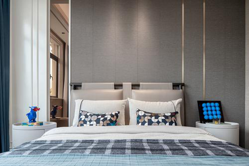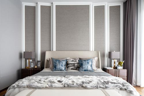 主臥設(shè)計(jì)呈現(xiàn)出低調(diào)內(nèi)斂的氣質(zhì),色調(diào)上的樸質(zhì)自然與軟裝的質(zhì)感緊密貼合,營造出細(xì)膩幽微的的安靜氛圍。