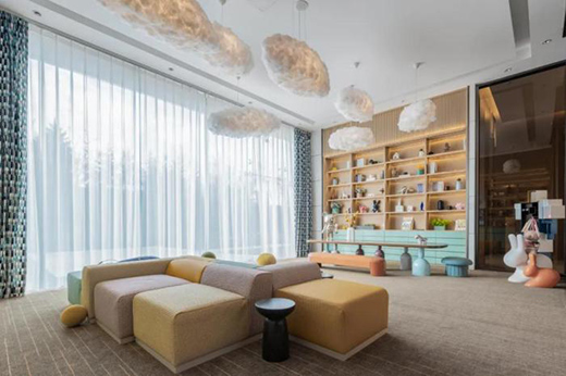 兒童區(qū)云朵造型燈飾,搭配上低飽和度的繽紛色彩,既童真又不失質(zhì)感,黃綠粉的撞色搭配,不會(huì)過(guò)于甜膩,營(yíng)造出簡(jiǎn)潔溫馨的空間氛圍。色彩與線(xiàn)條,童真與浪漫,點(diǎn)滴交融,空間處處傳遞出孩童的靈動(dòng)與活潑。