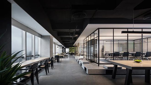 樣式各異的家具擺放打破常規(guī)制式如園林般疏密得宜、曲折盡致,既有大型辦公桌,也有半包一體式桌椅、水晶盒子般的玻璃會議室……巧妙的區(qū)隔讓空間既可以獨立,也可以融合,并讓每個人都可以享受到窗外的陽光,將共享理念發(fā)揮到極致。