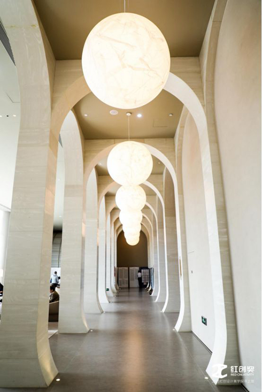 以國(guó)潮和文化為標(biāo)簽,天閱山河在文化的凸顯上也為室內(nèi)設(shè)計(jì)師們提供了靈感。仿造宣紙制作的墻面、以明代神獸長(zhǎng)頸鹿為原型的迎賓吉祥物,七個(gè)月球燈打造的故宮七進(jìn)概念等等為設(shè)計(jì)師們帶來(lái)了空間國(guó)潮、世界審美的設(shè)計(jì)新理念。