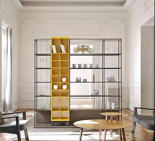 展示柜、書柜等通透型的家具都可以成為既有實(shí)用價(jià)值又能起到很強(qiáng)裝飾作用的空間分隔物。