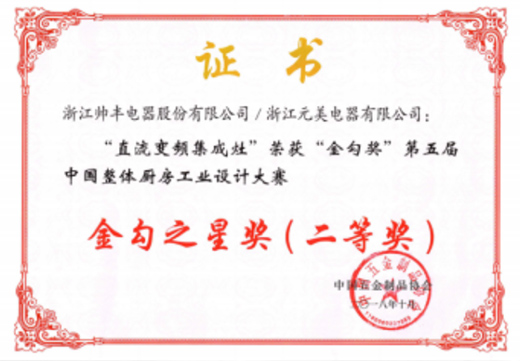 帥豐“直流變頻集成灶”榮獲金勾之星獎(jiǎng)(二等獎(jiǎng))