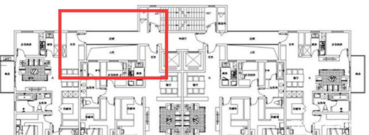 這種設計主要的問題在于,中間戶不算通透,端頭戶的采光又被中戶遮擋,優(yōu)勢在于公共空間浪費的不多,在前幾年的房源設計中比較常見。