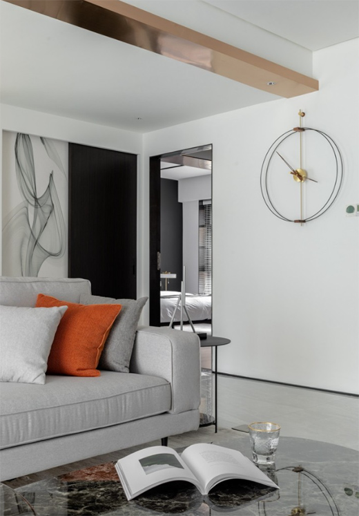 表達(dá)著事物的演化秩序。鏤空時鐘與白墻的契合