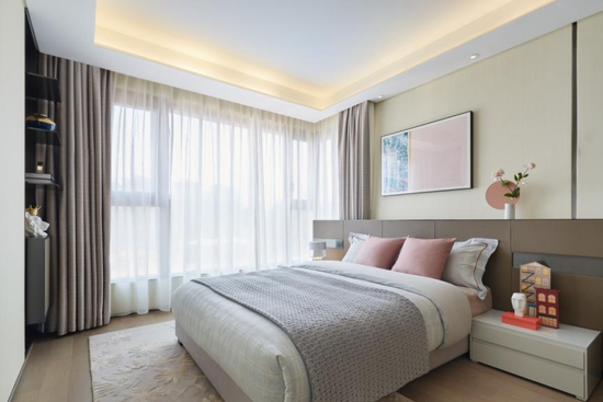 設(shè)計(jì)師方磊坦言:“秉持塑造簡練氣質(zhì)的追求,在設(shè)計(jì)中又創(chuàng)造性融入差異化詮釋,不拘一格升華審美的意義與隱喻?!痹诩翁靺R頂層樣板間,大處見剛、小處見柔,理性與感性交融,一切都自由馳騁,卻又章法有度,讓設(shè)計(jì)與品質(zhì)生活完美融合,淋漓盡致地流露出優(yōu)雅獨(dú)特的空間魅力。