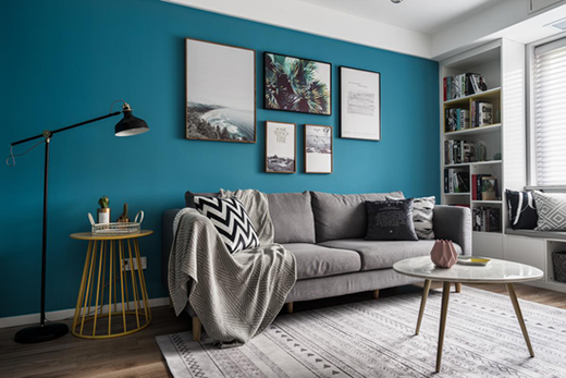 客戶追求與眾不同、獨一無二,還要融合我的設計風格。后來我把整個客廳的沙發(fā)背景墻用湖藍色來呈現(xiàn),把它從傳統(tǒng)色彩上的去做一個區(qū)別。餐廳位置做了一個混搭,顯得年輕有活力,還用飽和度很跳躍的顏色在家里做了點綴。