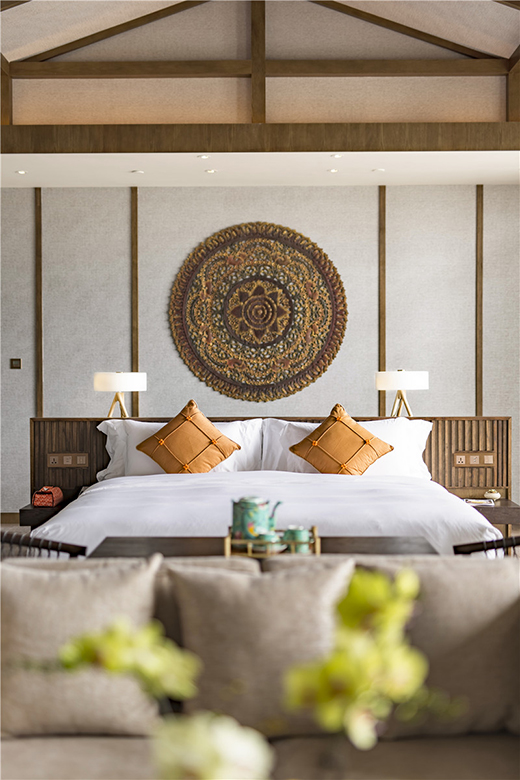 三十多年前,悅榕莊在泰國(guó)普吉島建立起第一家酒店,從那時(shí)起泰式風(fēng)情的自然體驗(yàn)成為悅榕莊集團(tuán)的一大特色。15米的客房泳池毫無懸念便成為這間頂樓豪華客房的高配??腿嗽跓o邊際泳池暢游時(shí),實(shí)現(xiàn)從泳池延伸到遠(yuǎn)方的天和地。與此同時(shí),設(shè)計(jì)師把泰式皇室享受之精妙跨越時(shí)空的界限安放在室內(nèi),讓人的感官也產(chǎn)生交錯(cuò),盡情享受這一刻泰式風(fēng)情的悠然自在。