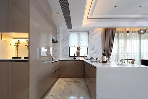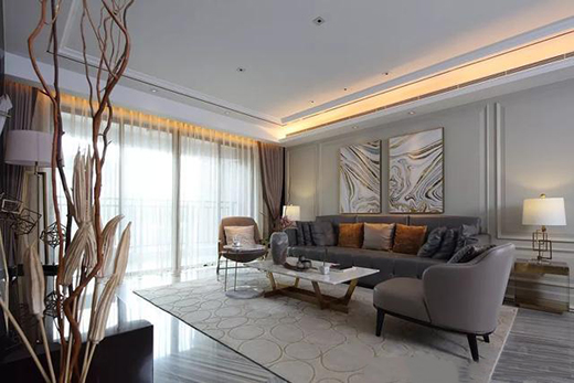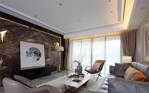浪琴山A1空間,家具和飾品都詮釋著“品質生活”。把生活藝術完美的融入整個生活空間,精致、時尚而不張揚。石材與金屬的碰撞,風格和色彩的接洽,塑造輕奢的品質生活??臻g的采光效果極佳,設計師結合自然光和室內光源,使軟裝的色調恰到好處。
