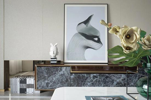 由幾何線條勾勒出的簡(jiǎn)凈優(yōu)雅的墻面掛畫,與瑩白似玉的藝術(shù)擺件、節(jié)短枝密的清雋玉蘭花藝,氣質(zhì)相映而美感互融,點(diǎn)點(diǎn)滴滴凝聚成入戶玄關(guān)的美學(xué)曲調(diào)。