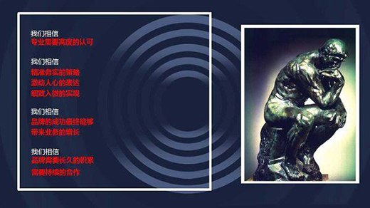 雖然是一個靜物,但是它體現(xiàn)了很多動態(tài)的內(nèi)容,跨越時間、思想、以靜制動,作品每一個細(xì)節(jié)都很好地體現(xiàn)了設(shè)計者的理念。所以企業(yè)在品牌建設(shè)和設(shè)計以及傳達(dá)的時候,能夠彼此強(qiáng)強(qiáng)關(guān)聯(lián),讓品牌做一個有思想的思想者,我想,企業(yè)如何通過設(shè)計做好品牌,即可得到答案。