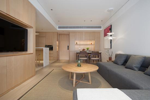 白,是極簡,也是深刻。在白色的襯托下,原木色柜面與地板讓空靈雅致的空間多了一些溫暖和隨性。