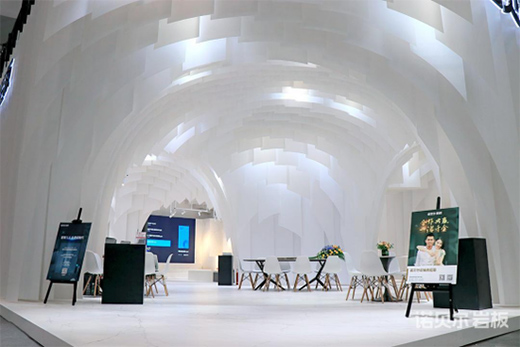 展廳現(xiàn)場錯落有致,營造出了一種洞穴的氛圍,設(shè)計師提取了“巖洞概念”,讓人聯(lián)想到原生態(tài)的石材礦,隨著人類的進(jìn)步,對稀有石材的開采讓資源越來越匱乏,為了體現(xiàn)自然對于人類的重要影響,諾貝爾巖板從巖洞的自然形態(tài)獲取靈感,將稀有石材優(yōu)質(zhì)的花色提取出來,研制出了諾貝爾巖板5.0全通體系列。此次展位巖洞的設(shè)計蘊含了采納礦石的匠心精神,與諾貝爾巖板品牌的精神相契合,同時也表現(xiàn)了諾貝爾巖板的產(chǎn)品品質(zhì)也與巖洞的通透、原生態(tài)的品質(zhì)感一脈相承。