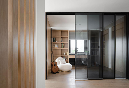可分可合的設(shè)計,實現(xiàn)書房功能的同時,讓空間更通透?!百x予一個空間更多功能,增加家的可能性,就是灰空間存在的意義”設(shè)計師王明治如是說。
