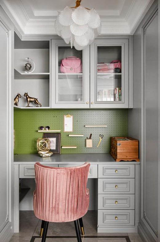 按業(yè)主要求設立了手作房空間,綠色與粉紅色點綴,是生命與浪漫的結合。作為一個休息空間,生活的浪漫情調都會生發(fā)于此,余韻悠長。