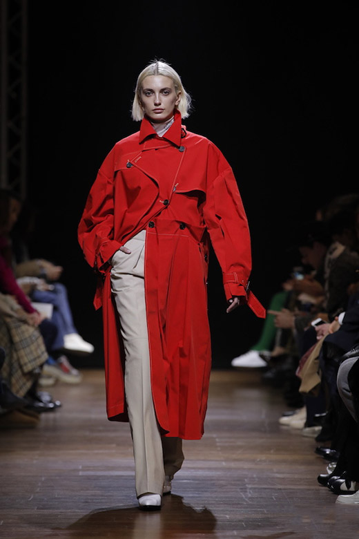 繼而服裝在色彩上呈現(xiàn)出跳躍感,例如大膽的使用率朱紅色,使得服裝更為絢麗,迎合季節(jié)的特性。醒目的色調(diào)讓個性更為突出、彰顯活力。將潮流新穎與干練內(nèi)斂詮釋的淋漓盡致。