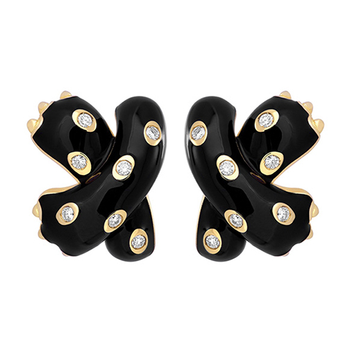 RED斐登Ombre Féline系列黑色漆面黃金鑲嵌白鉆耳環(huán)